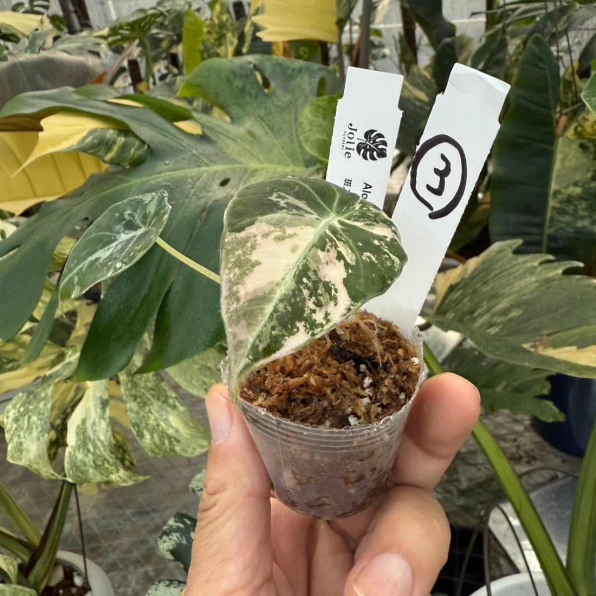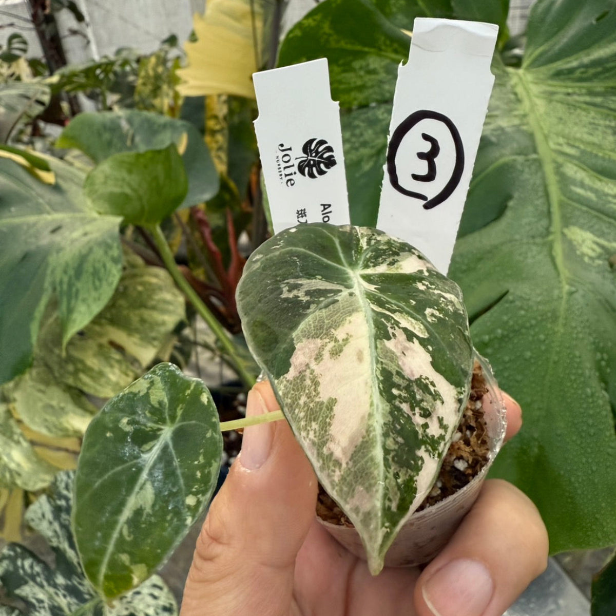 - 学名/英名:Alocasia reginula 'Black Velvet pink variegated'