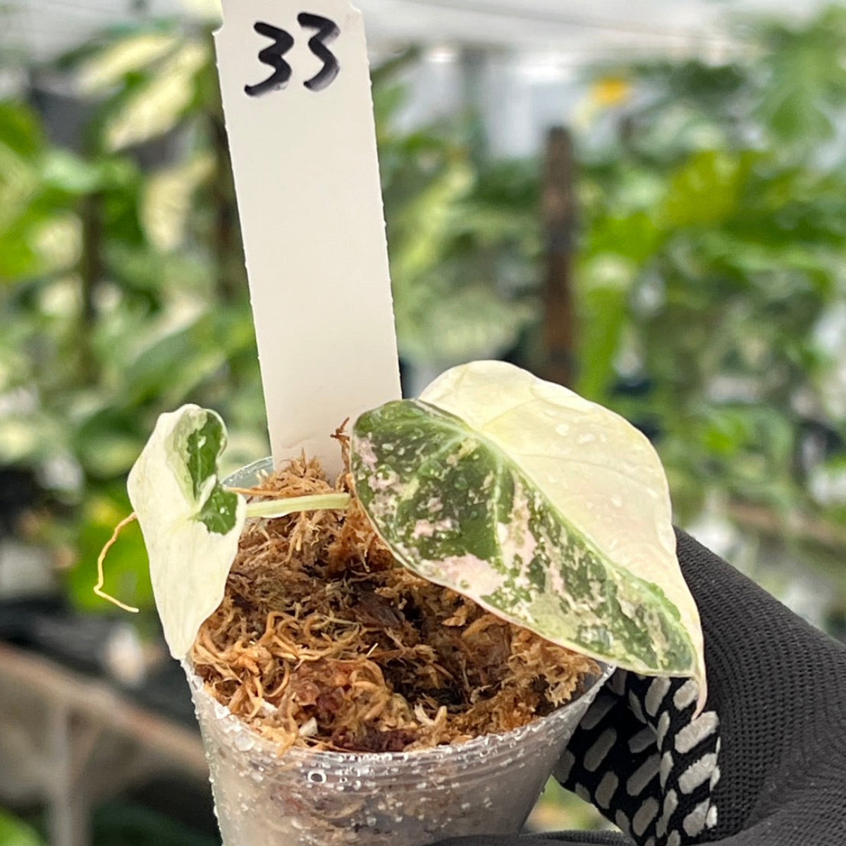 【追加セール】アロカシア・レギヌラ 'ブラックベルベット' ピンク斑入り 2号サイズ