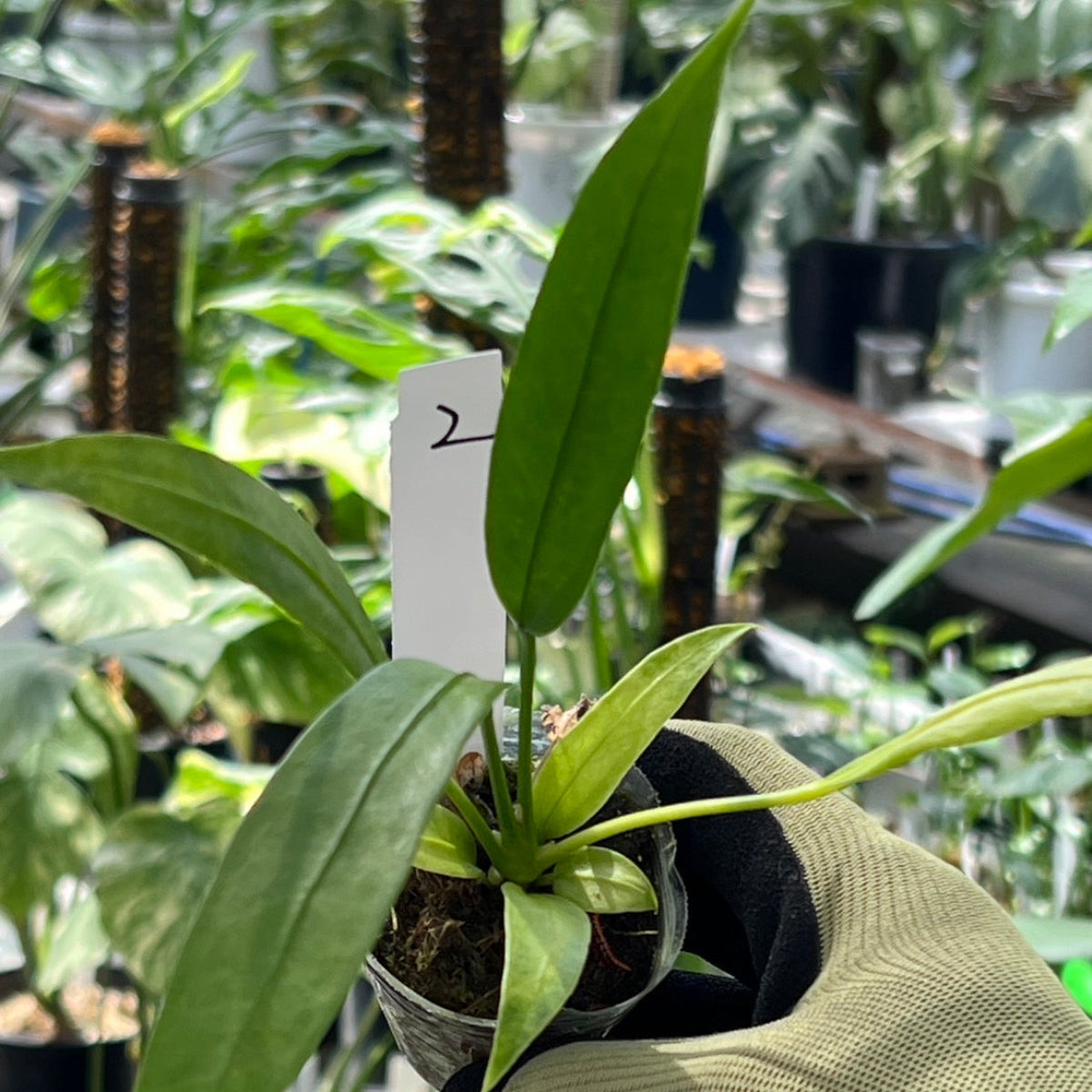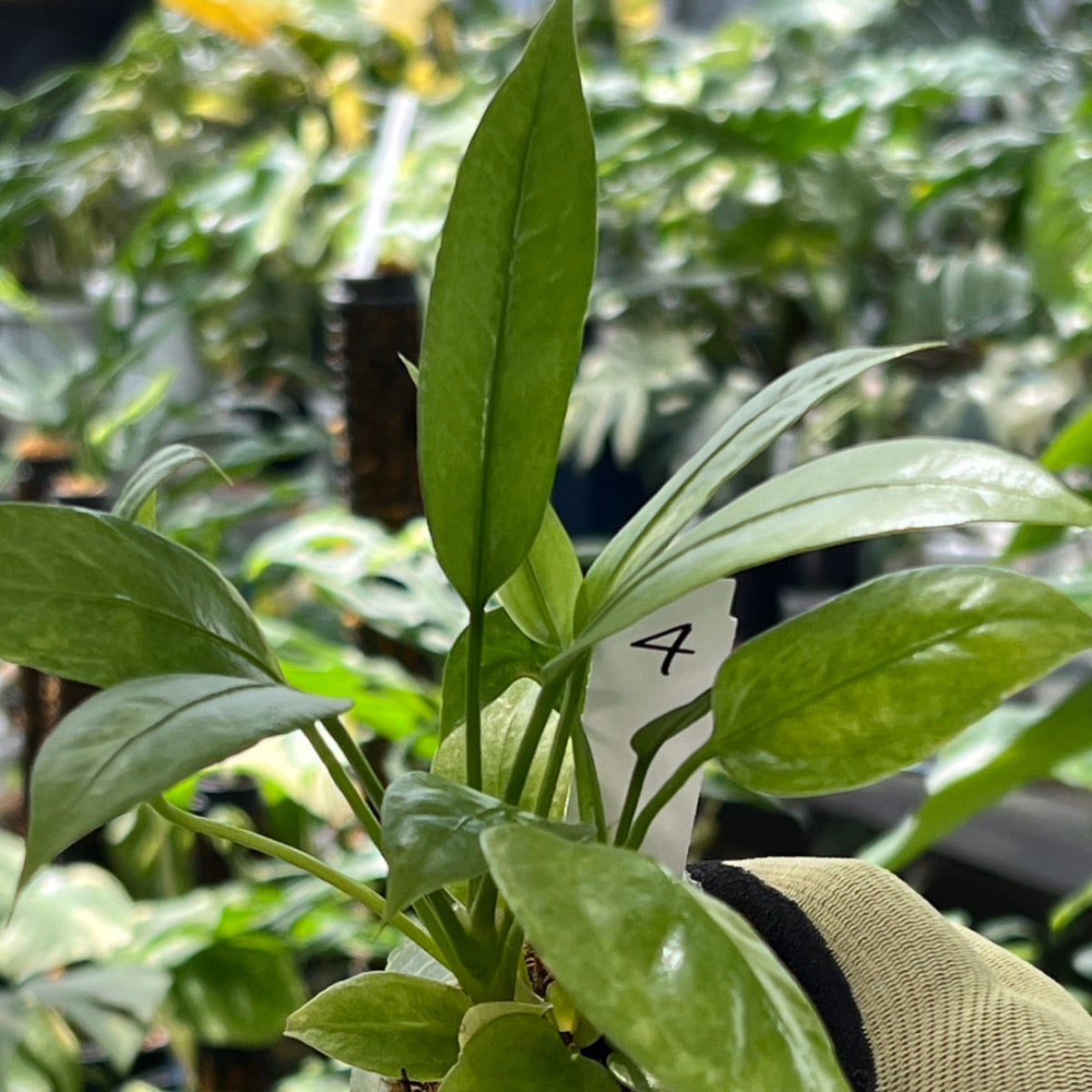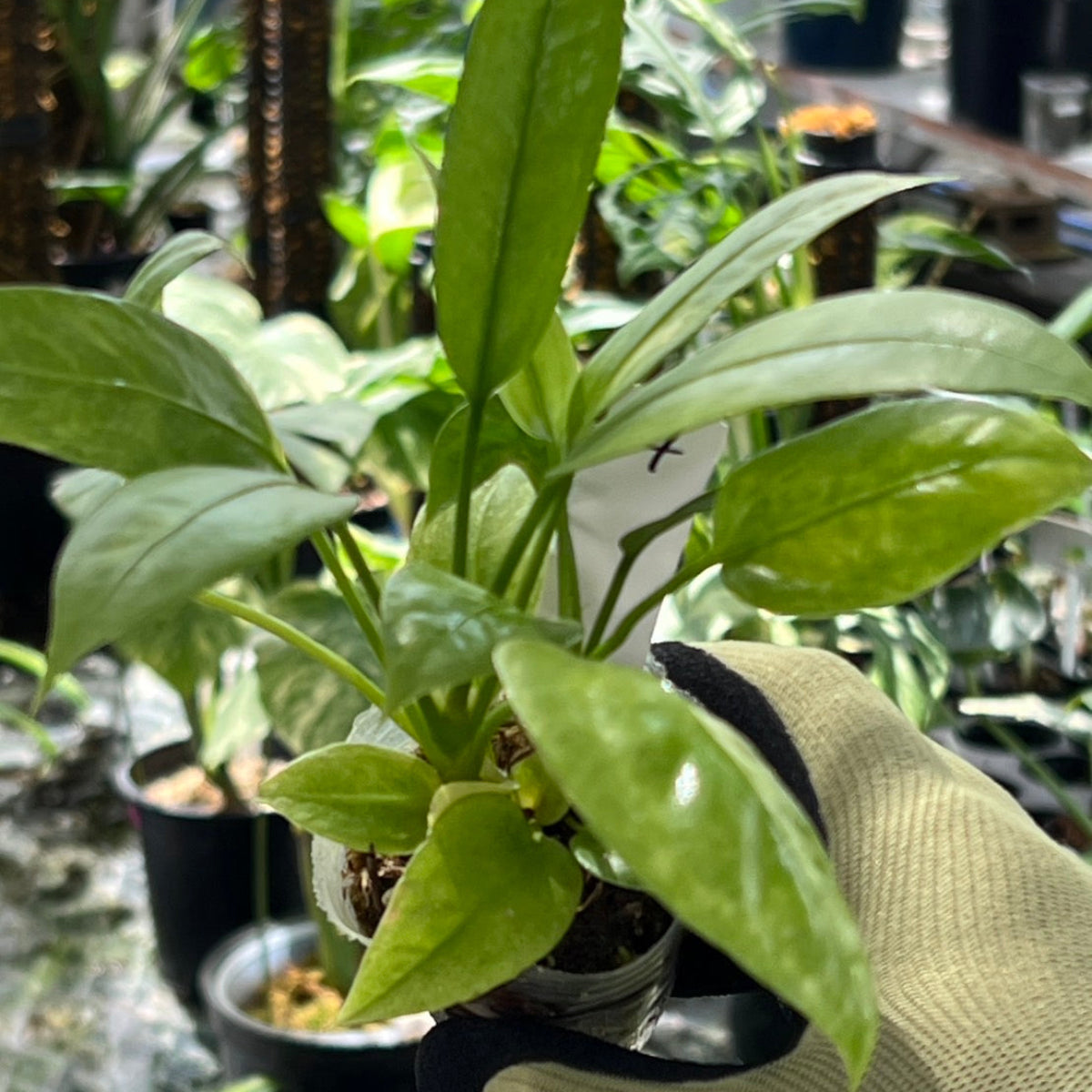 全体的なシルエットが独特なアンスリウムの原種であり花は控えめですが、葉を観賞するのに適しています。また流通量が少なくレアな品種ですが斑入りはさらに希少性があります