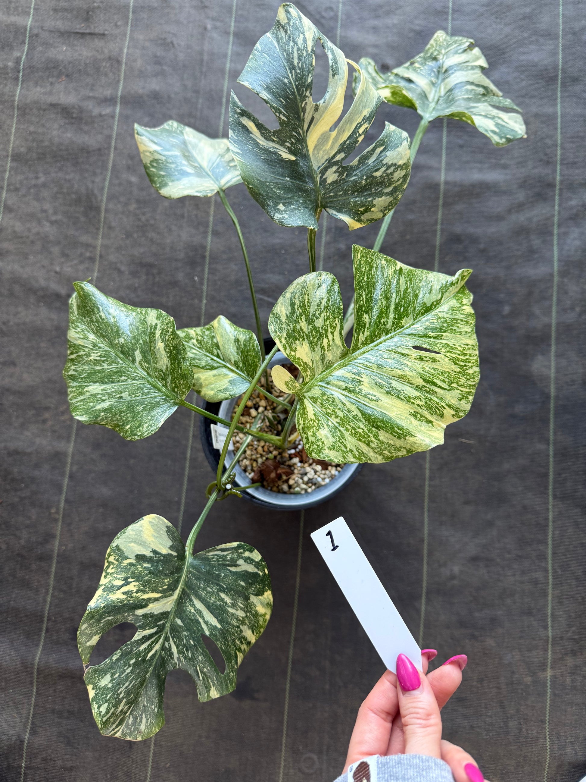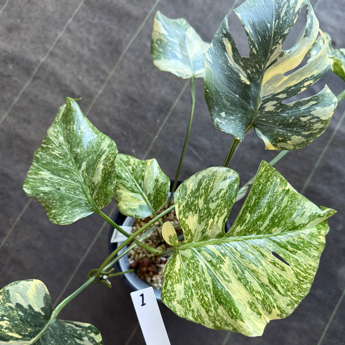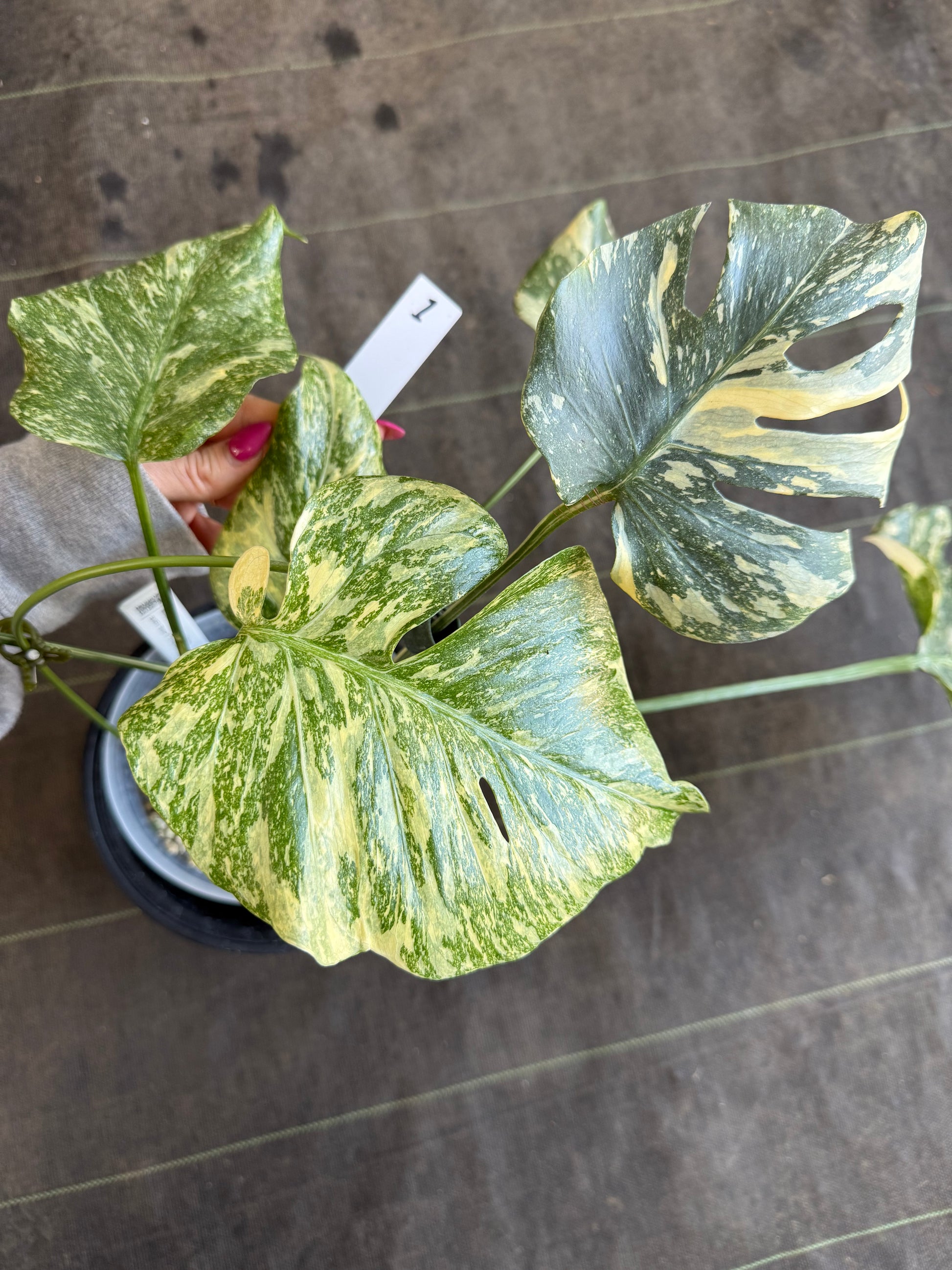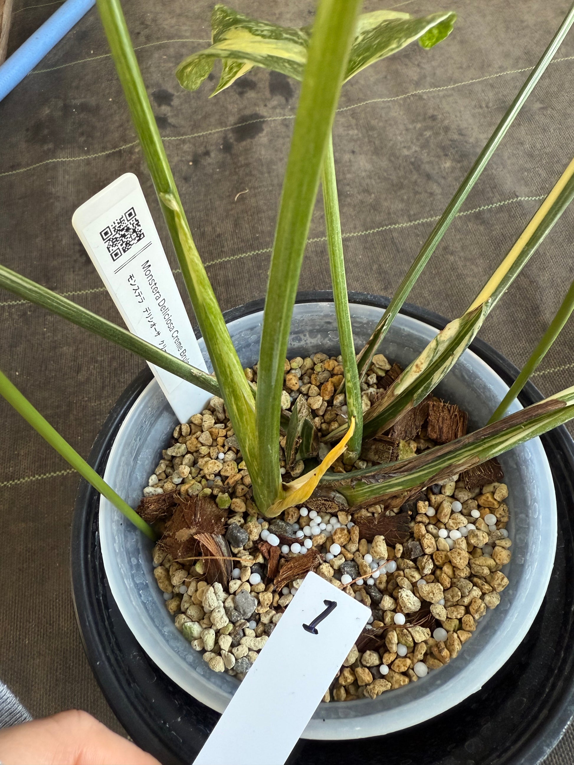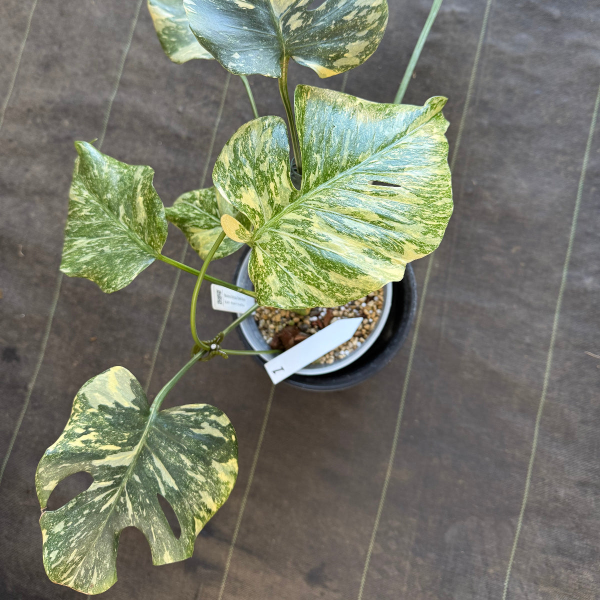 特別に美しい斑入りのモンステラ、「タイコンステレーション クリームブリュレ」が入荷いたしました。「ブリュレ」は、数あるタイコンステレーションの中でも特に美しい散り斑を持つ選抜種です。