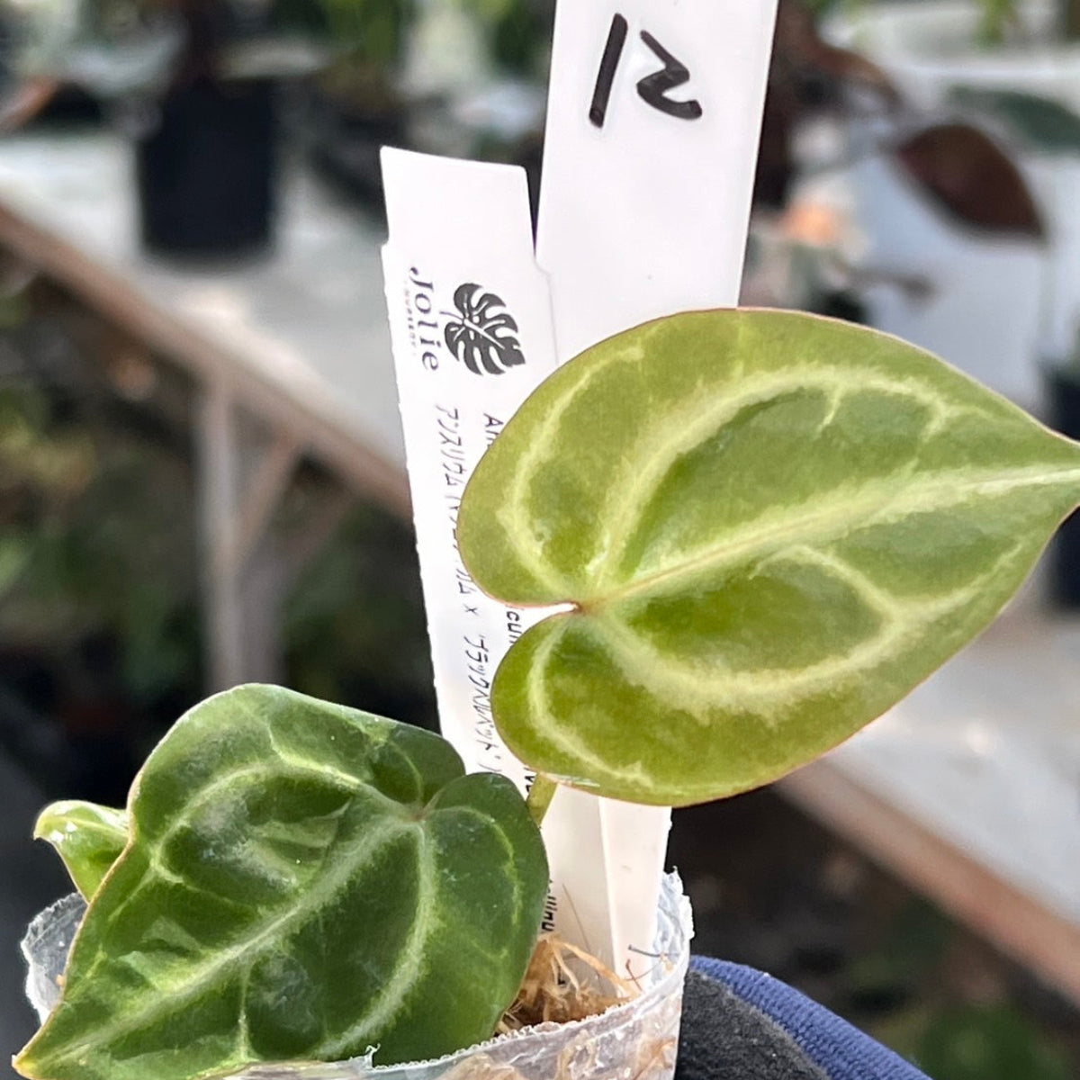 - 学名/英名:Anthurium (magnificum × ‘Black Velvet’) × crystallinum × ‘Michelle’ F3