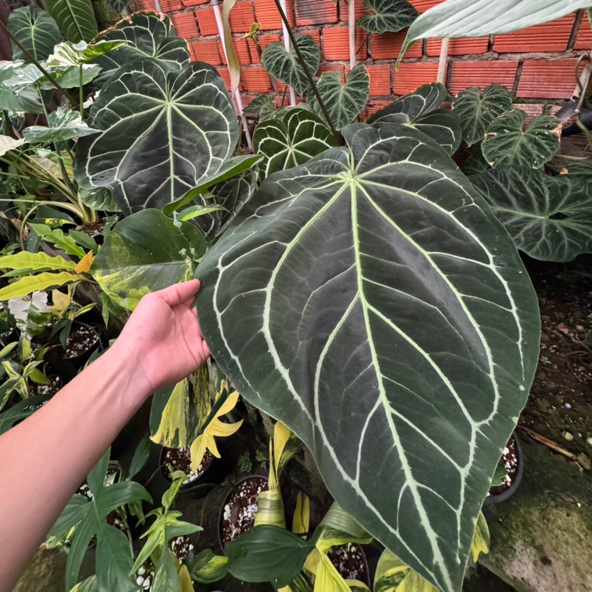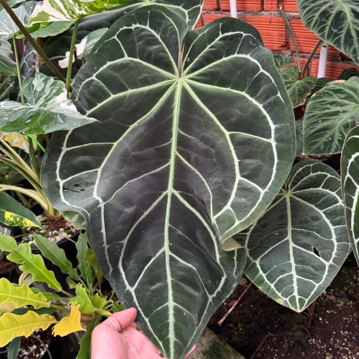 アンスリウム・ミナハサは、その独特な葉の質感と美しい葉脈が魅力的な、希少なアンスリウムです。インドネシアのスラウェシ島に自生し、深緑色のベルベットのような質感の葉と、際立つ葉脈が特徴で、観葉植物愛好家やコレクターの間で人気を集めています。