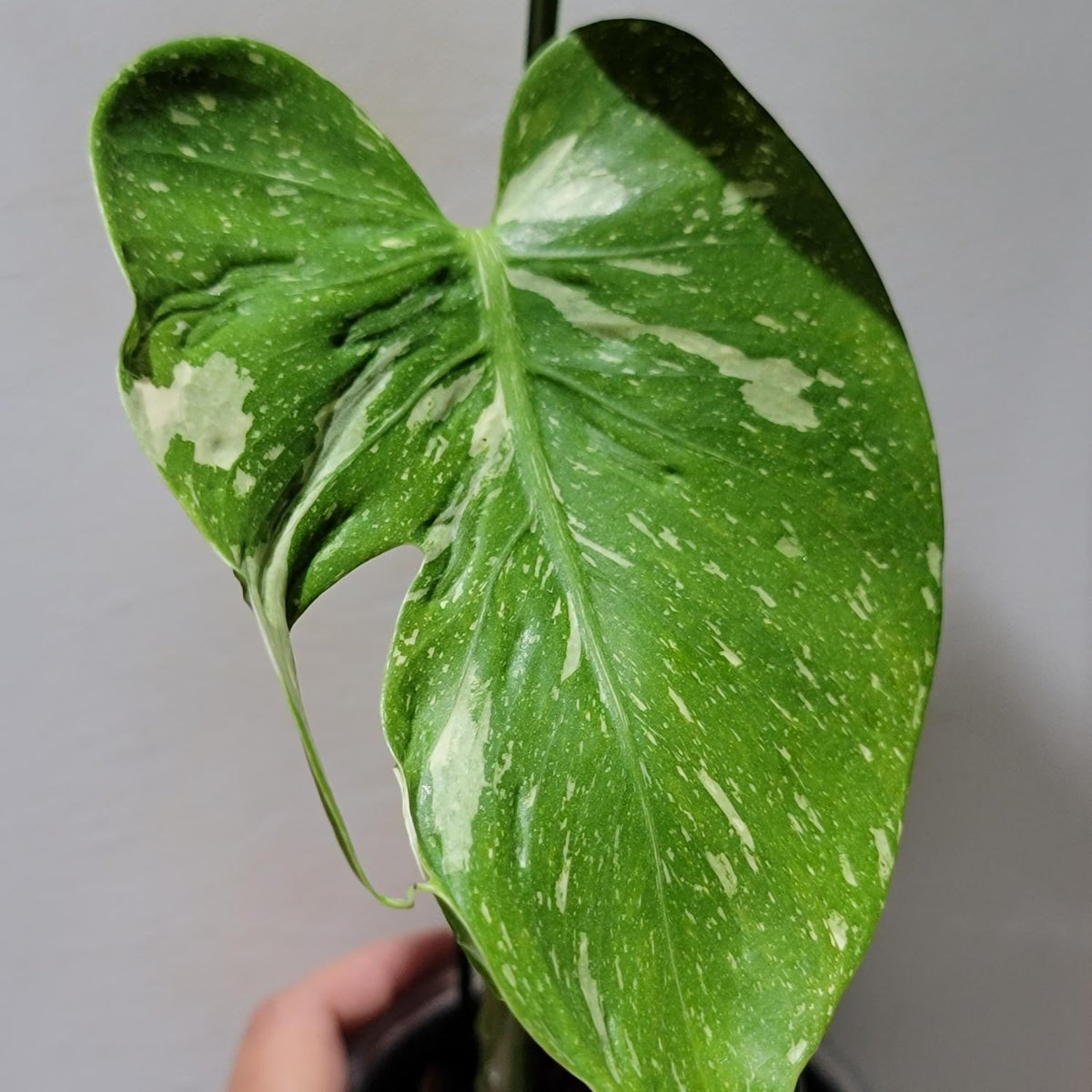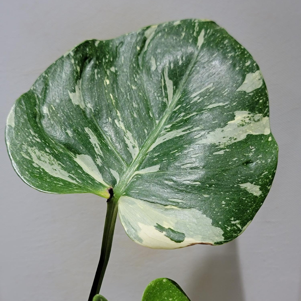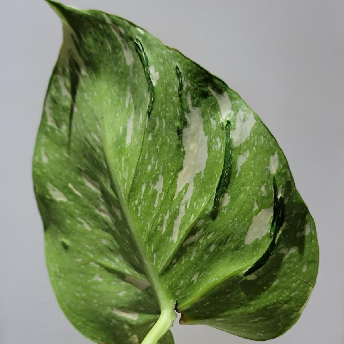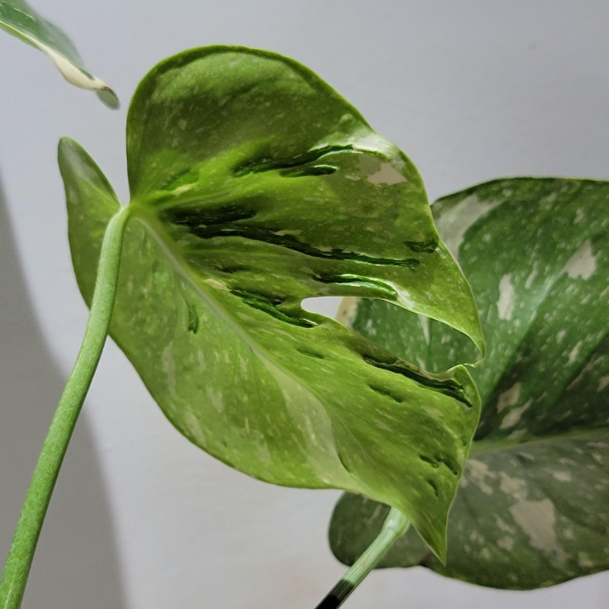 葉の表面には盛り上がった濃い緑色の斑点が見られることがあります。これにより葉に独特のテクスチャーが生まれます。また通常のモンステラと同様に、成長するにつれて葉に深い切れ込み(切れ込み)や穴(穿孔)が現れますが、メデューサの場合はこれらの切れ込みや穴も、葉のうねりに合わせて不規則な形状になる傾向があります。