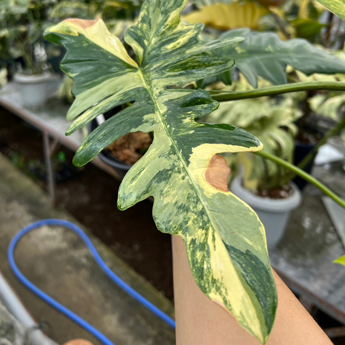葉の色は親であるフロリダビューティーの特徴を受け継ぎ、美しい斑入りが現れます。