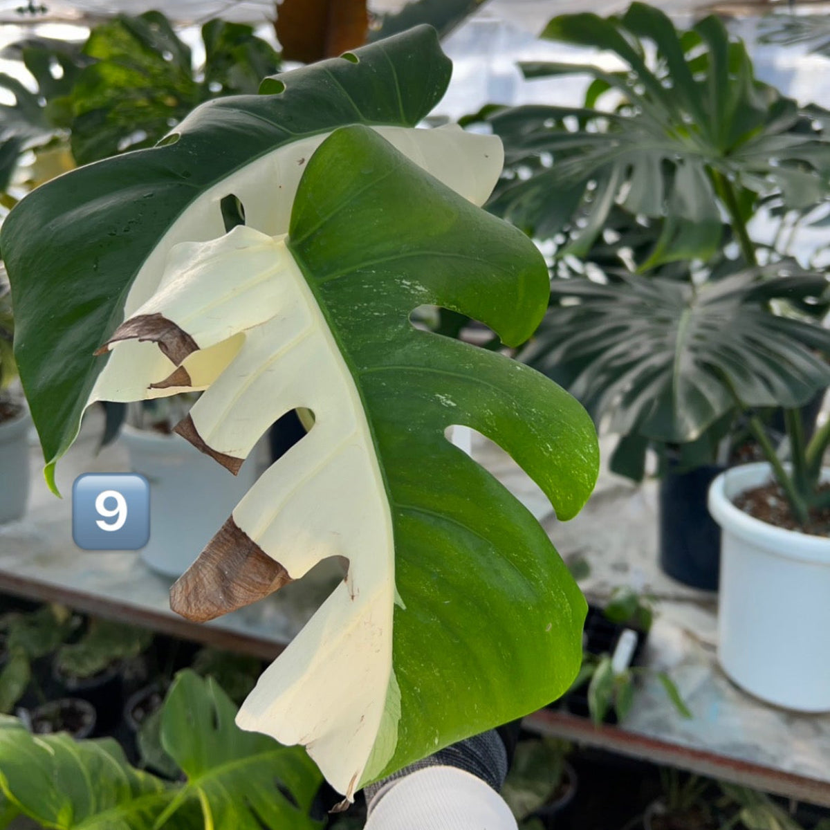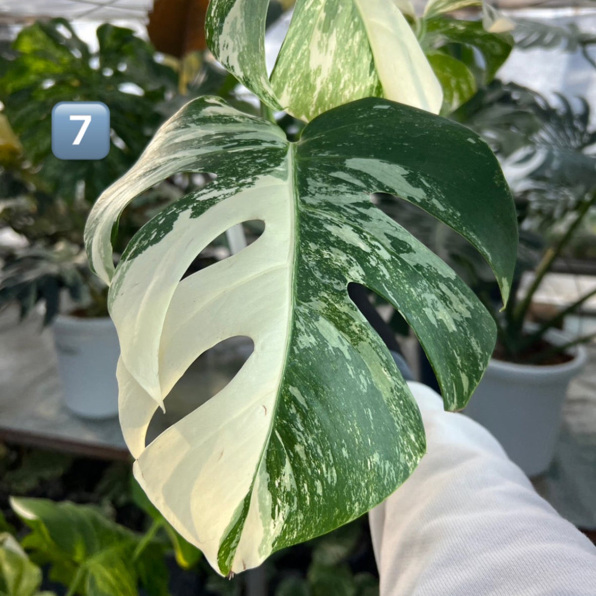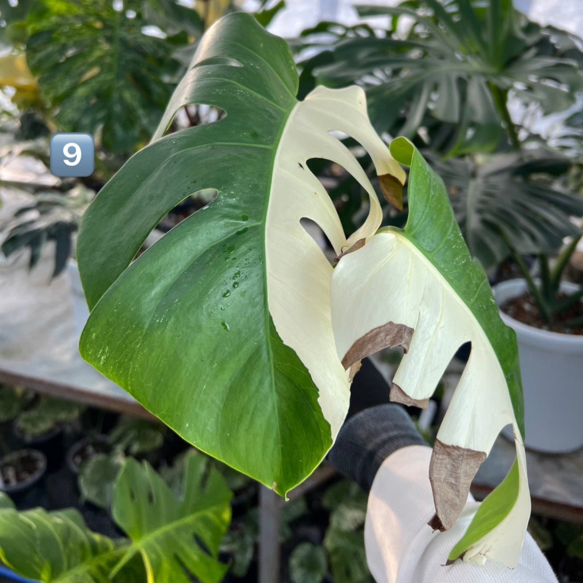 - 学名/英名:Monstera deliciosa var. borsigiana 'albo'